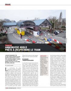 L’hebdomadaire économique Eco Savoie Mont Blanc fait sa couverture du 24 février 2017 avec le Projet de tram d’Annemasse et titre “Annemasse Aglo reprend le tram”.